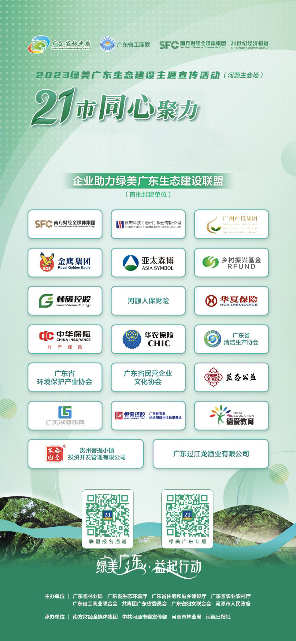活动期间,由南方财经全媒体集团发起和组织的“企业助力绿美广东生态建设联盟”正式启动成立(以下简称“联盟”)。555000jcjc公海科技作为首批共建单位,与相关领导、其他金融机构、企业代表、媒体等共同参与启动仪式,并向社会各界发出号召,通过联盟平台,以多种方式积极投身“绿美广东”生态建设当中。